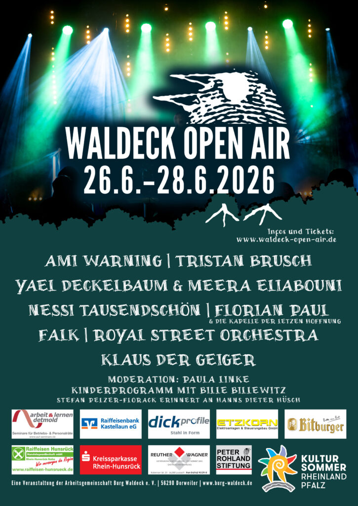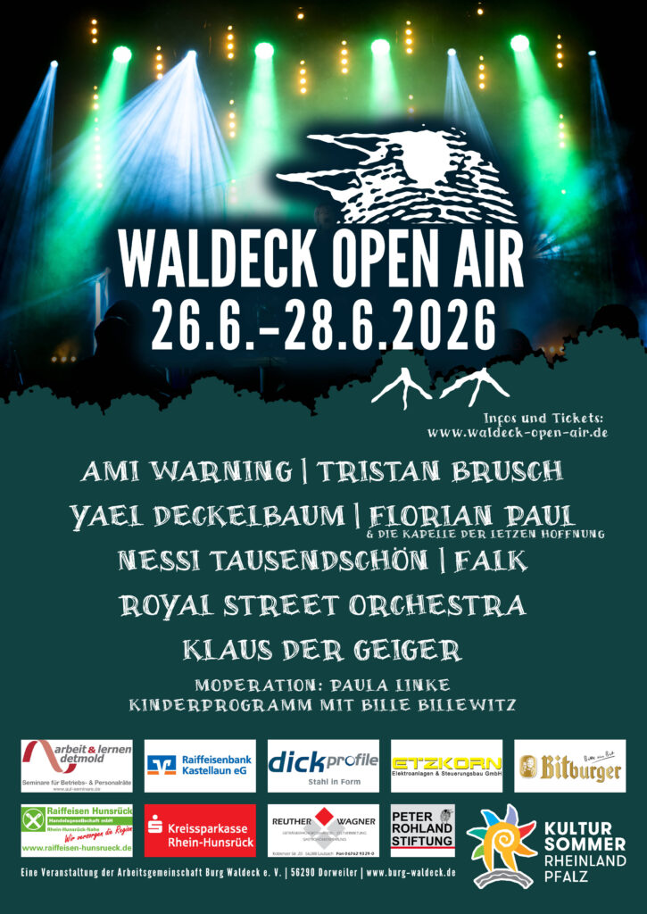 WALDECK OPEN AIR 26.6.-28.6.2026 >>>> TICKETS 2026 FRÜHBUCHER-RABATT BIS ZUM 28.2.26! Wir danken unseren Partnern und Sponsoren: